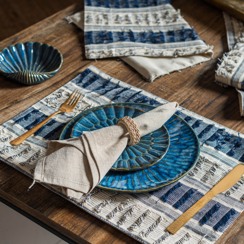 Our Amalfi placemat captures the essence of the Amalfi Coast's breathtaking blues and pristine whites. The rich, indigo hues interwoven with lighter shades create a visual depth reminiscent of the Mediterranean Sea, while the intricate patterns mirror the quaint beauty of Amalfi's terraced landscapes. Pair with our Amalfi table runner for a perfect look!